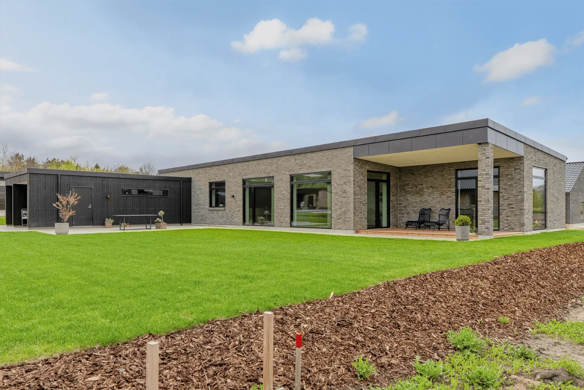 Når du køber både byggegrund og hus af Klimahuse, er alle udgifter til byggevand, byggestrøm og håndtering af byggeaffald desuden betalt