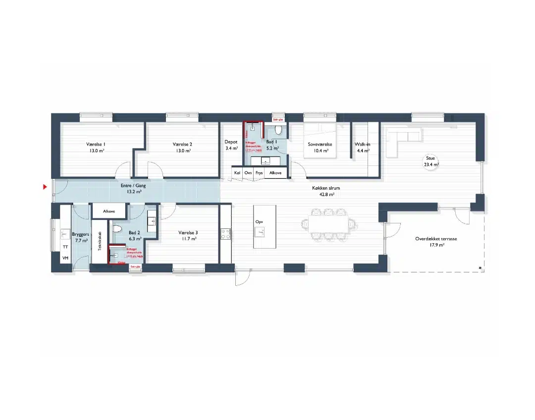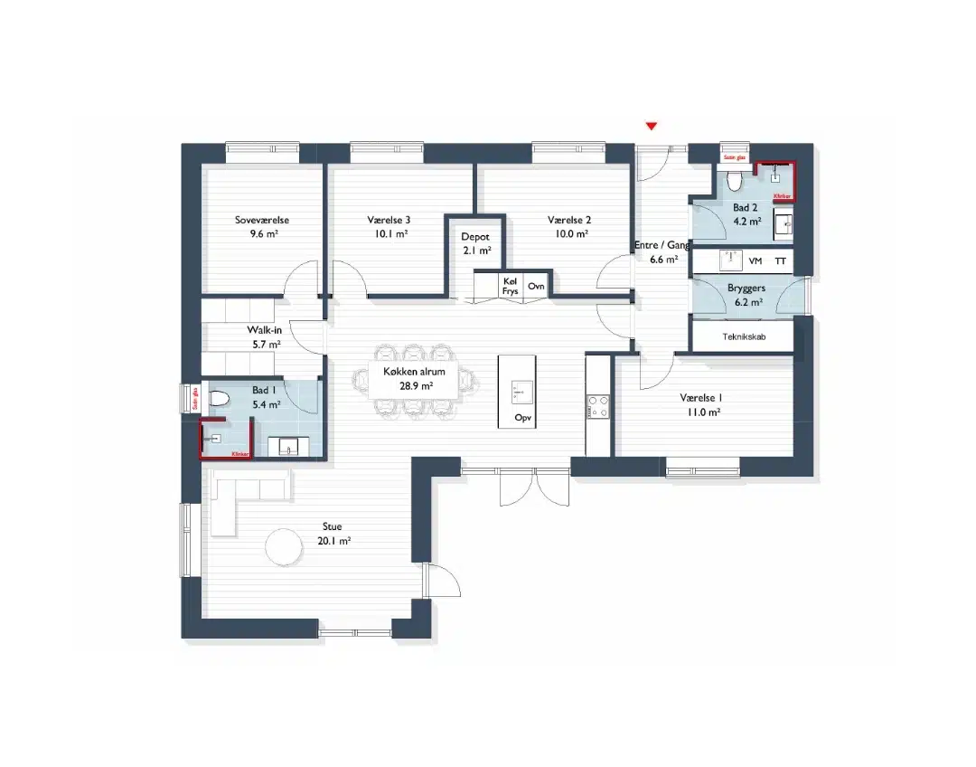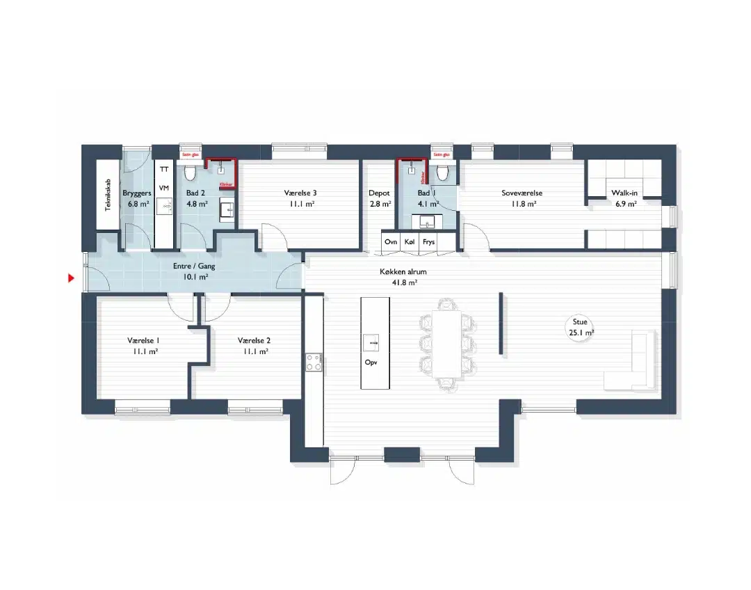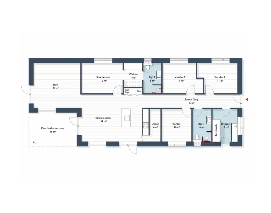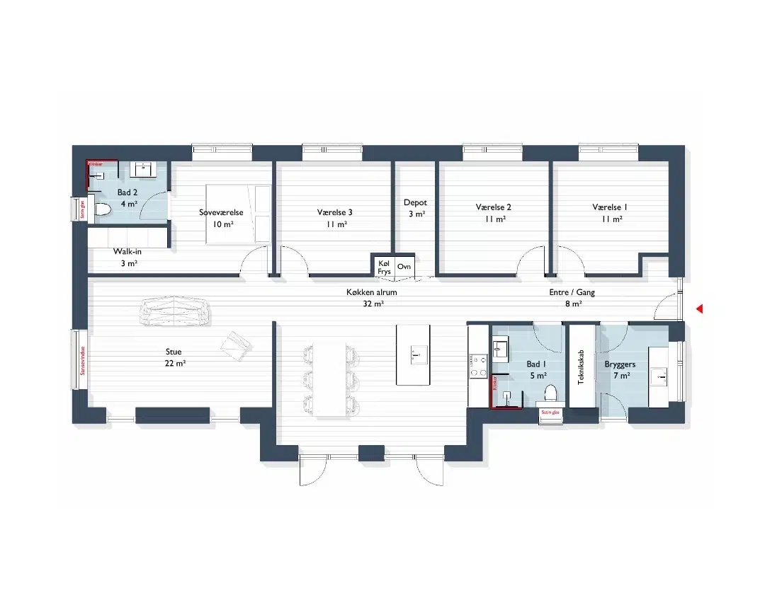 - Køkken-alrum med praktisk depotrum